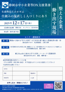 静岡市の自治体主催セミナー「生産性向上のカギは仕組みの見直しと人づくりにあり」に当社代表 が吉岡大輝が登壇します
