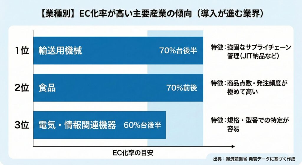 | 順位 | 業種 | EC化率の目安 | 特徴・背景 |