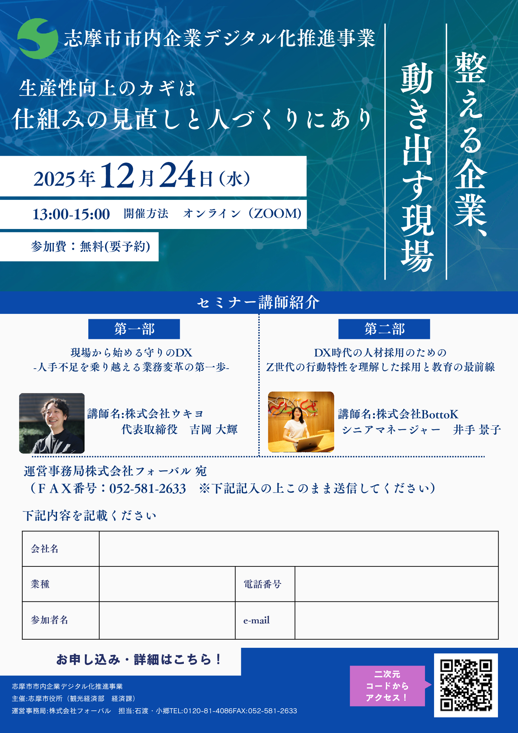 三重県志摩市 自治体主催セミナー「生産性向上のカギは仕組みの見直しと人づくりにあり」に当社代表 が登壇いたします